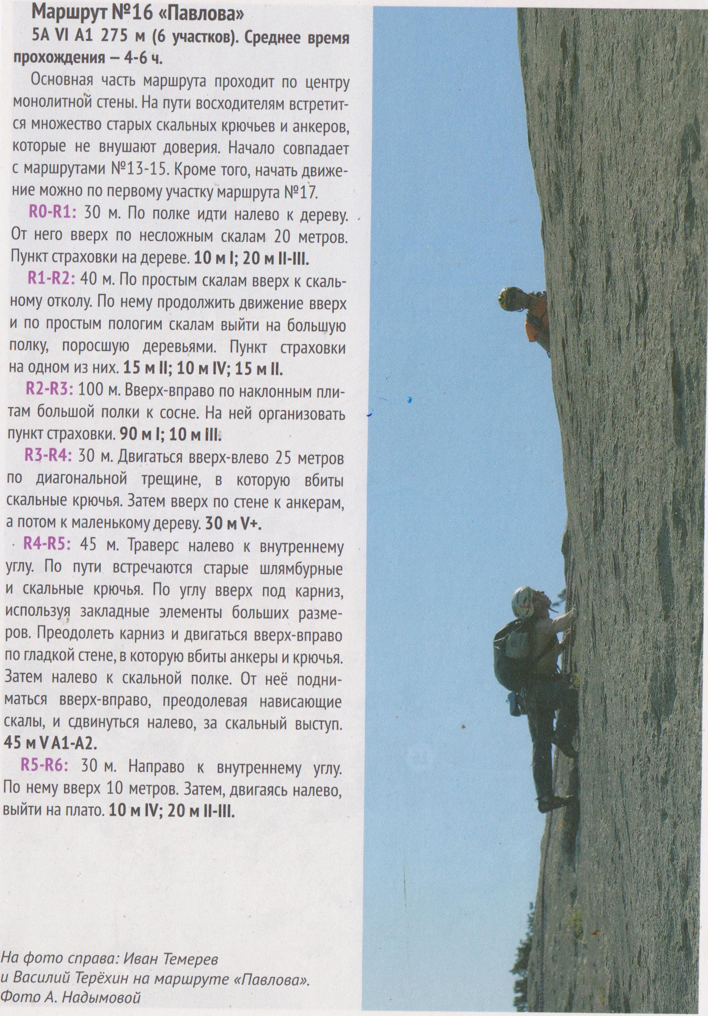 5A VI A1 275 m (6 pitches). Average passage time — 4–6 hours.